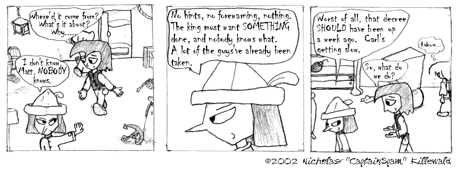 See, when I started this mess, I envisioned being able to swap between full-page comic book-like comics and daily comic strip-like comics any time I felt I could NOT tell a story and break it into evenly spaced punchlines. The opening bits are an example. Sorry, you'll have to put up with this for the first four comics...