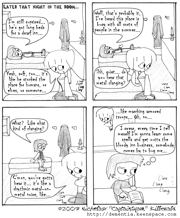 One may wonder why Matt either doesn't hear the clanging or doesn't think much of it. He is, after all, a fairly experienced thief and should recognize such things.