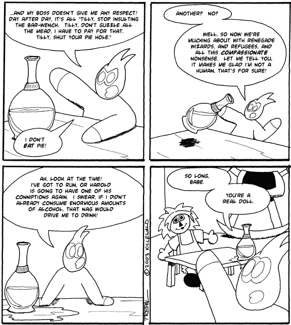 Today, we have ourselves a guest strip from none other than Matt Trepal, creator of Fight, Cast, or Evade. He's always had a fairly wicked style of writing to him, something he brought out for Tilly today. Now, go read his comic. It's got more cool writing like this. Go.