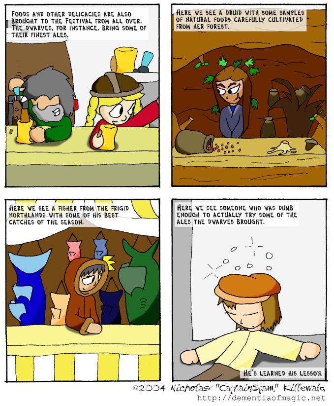 One may note the light blue fish with a yellow crown-like growth on its head behind the fisherman from the North. This is a particularly rare species of fish known to most seafarers as "King Phil". This fish, despite its size, is a fighter. It has been known to viciously attack various seafaring vessels that pass through its waters. Worse, it seems to be a leader fish (Hence, "King Phil"), quickly rallying other fish to help in its attack.