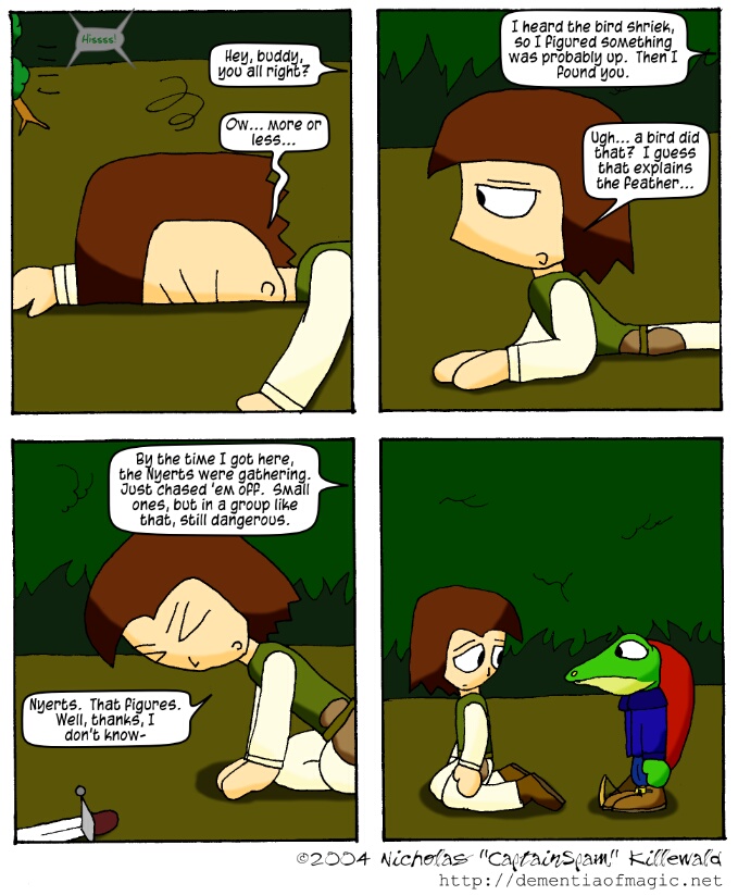 Fortunately, Nyerts are easily scared by attention or groups of people. They don't hide near towns or attack travelling parties, for instance. They're also quick to run if they feel threatened. They look like bushes, for crying out loud. If you had a body and head that a horse could easily mistake for food, you'd probably be quick to run from most things, too.