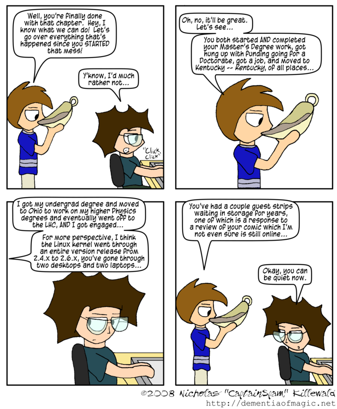 Oh, hey, it's end-of-the-chapter time again! Now's the time for mailbag questions and guest strips if you have them! As usual, you can send in mailbag questions either to the Forums (yes, they're working again) or emailed directly to me, and I'll see if I can write answers for them into Break Time comics. Guest strips, just email those in. More details on both in the forum.