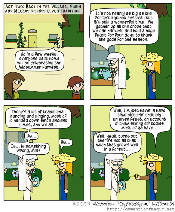 We last heard from Melzos way, way back in Chapter Two, back when the coloring was worse and the font was terrible. To quickly recap, he runs a farm outside of the village, he is Marzos's younger brother, and that's about it.